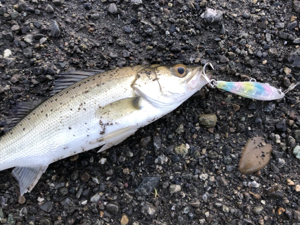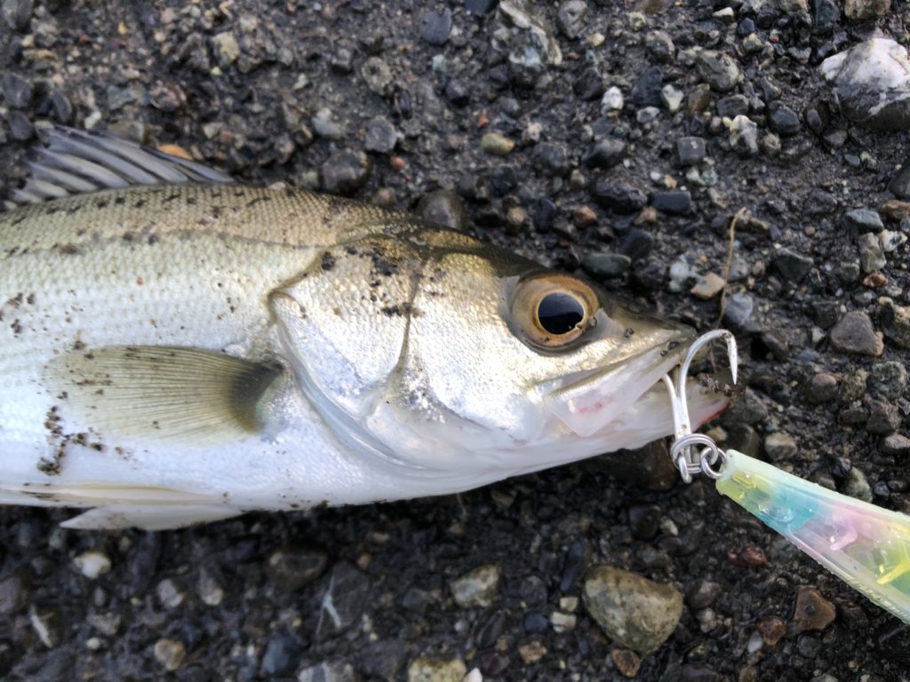 これも定番の合流部のヨレにヘビーショット65を流し込むとコツンっと小さなアタリ。
